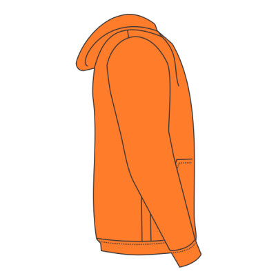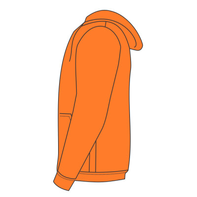 100% polyester. Anti-pill single jersey knitted soft feel fabric. Conforms to EN ISO 20471: 2013 + A1: 2016 class 3. RIS-3279-TOM (orange colourway only). Black and navy provide enhanced visibility. Drop shoulder style. Two panel hood with grey contrast drawcord. Taped neck. Two reflective bands around the body, sleeves and one over each shoulder. Front pouch pocket. Ribbed cuffs and hem.