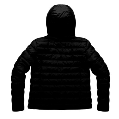 20D nylon outer. Polyester padding. Nylon lining. Lightweight. Showerproof and windproof. Shaped fit. Integral adjustable hood. Full length zip. Two front zip pockets. Elasticated cuffs. Cut out label.