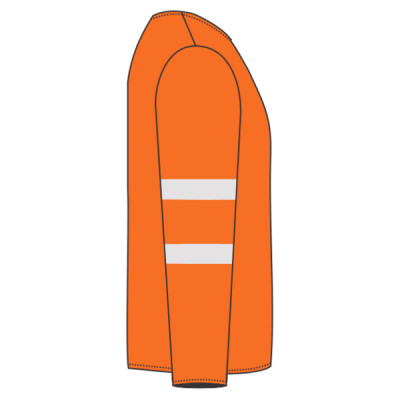 100% polyester. Conforms to EN ISO 20471: 2013 + A1: 2016 class 3. RIS-3279-TOM (orange only). Soft ribbed knit collar and cuffs. Taped neck. Two reflective bands around the body, sleeves and one over each shoulder. Twin needle hem.