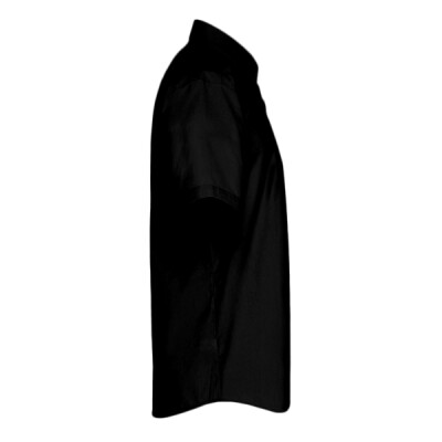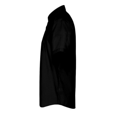 65% polyester/35% cotton poplin. Easy care fabric. Semi-fitted. Stiffened formal cut collar. Two button closure on collar stand. Back yoke. Curved hem. Easy cut out neck label. Available in long sleeve PR207.