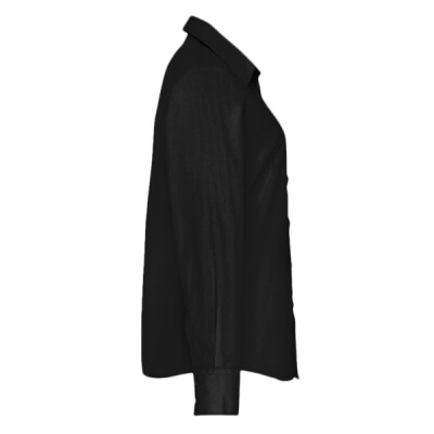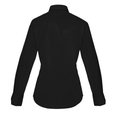 65% polyester/35% cotton poplin. Easy care fabric. Fitted style with bust and back darts. Soft collar styling. Two button cuffs. Curved hem. Cut out neck label. Available in short sleeve PR309.