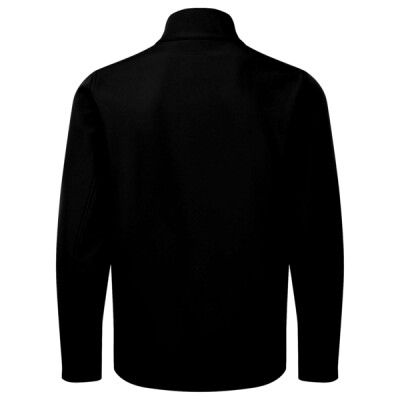 Two layer soft shell. 100% recycled polyester. Bonded fleece inner layer. Easy care fabric. Shower and wind resistant. Full length zip with chin guard. Two front zip pockets. Tear release adjustable cuffs. Elasticated drawcord hem.