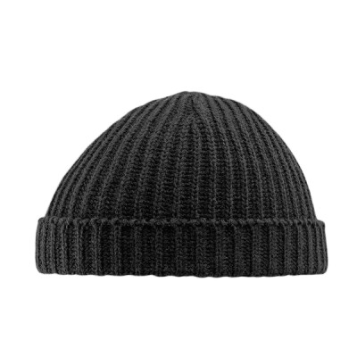 95.5% acrylic/4% polyester/0.5% elastane. Ribbed knit. Retro styling. Shallow crown. Cuffed design.