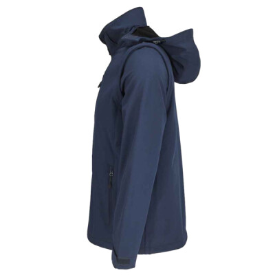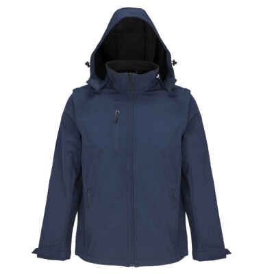 Three layer soft shell. 94% recycled polyester/6% elastane outer layer. 5000m waterproof, windproof and breathable membrane. Micro fleece lining. Detachable adjustable hood. Full length nylon inverted zip, with chin guard and inner zip guard. Zip off sleeves. Right chest zip pocket. Inner pocket. Two front zip pockets. Tear release adjustable cuffs. Tear out label.