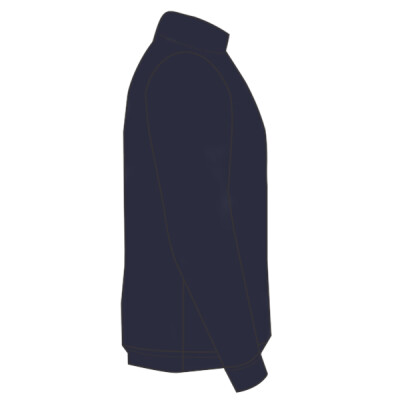 35% sustainable cotton and 65% polyester brushed back fabric. Ribbed cuffs and hem. Half-zip.